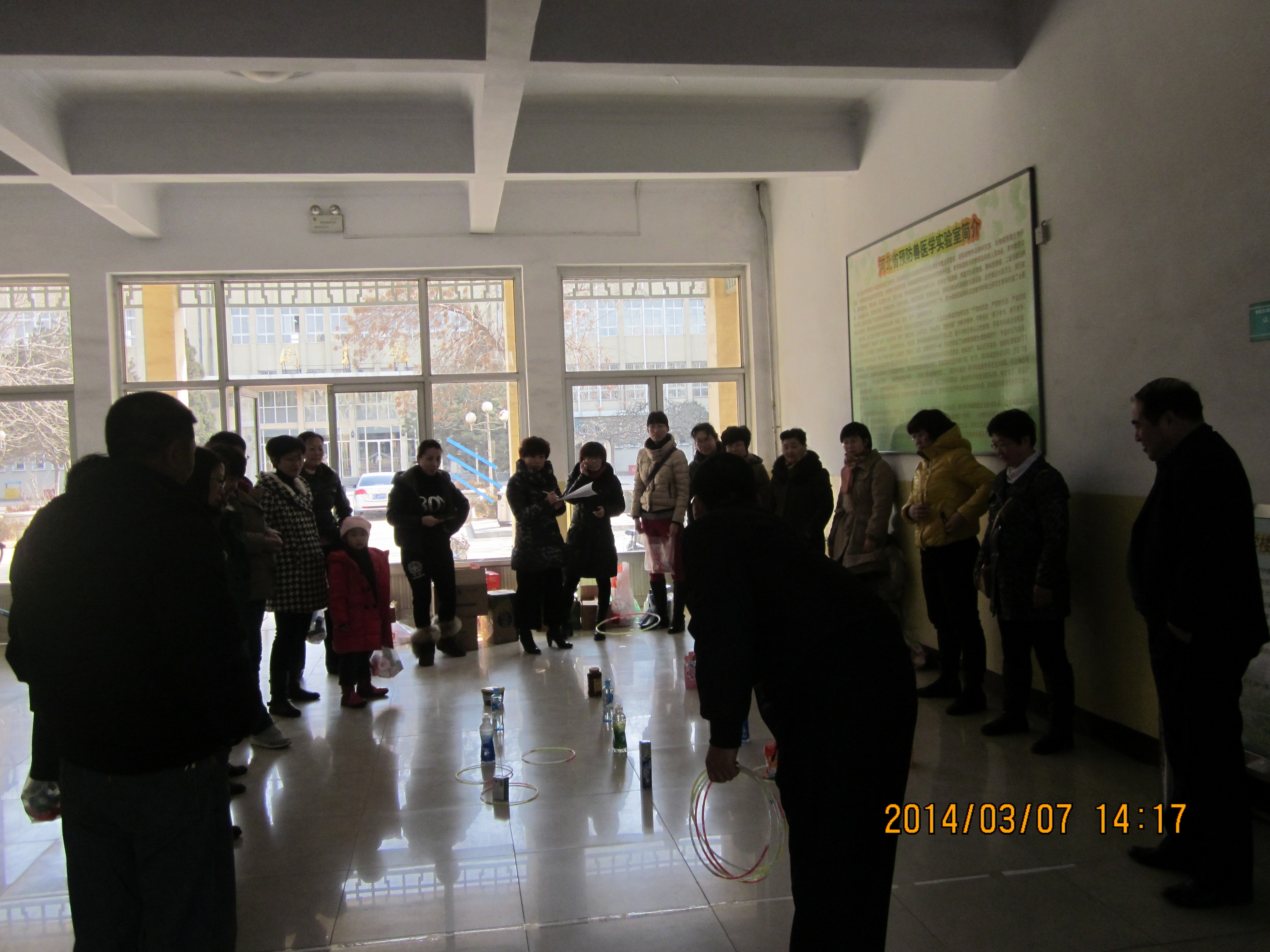 2014年3月7日kaiyun官方网站入口在动科楼一楼大厅举办了庆三八趣味套圈活动。本次套圈活动给每个教职工发放套圈的圈10个,站在套圈起止线外套,套中哪排奖品就到领奖处领取哪个等次的奖品,奖品共分为类,第一排的价值最低,难度也最低,离着起止线最近,以此类推最后一排离着起止线最远,奖品价值也最高。男教工在本次活动中参与的积极性也较高,他们的起止线比女教工远了一些,但是命中大奖率还是比较高,大家在套圈的过程中时不时发出开心得笑声,套不住的给予鼓励,套进大奖时大家齐鼓掌庆祝,气氛十分热烈,大家都开开心的度过这个三八节日,每人得到的奖品也非常丰厚,最多的能命中7圈,收获不小。