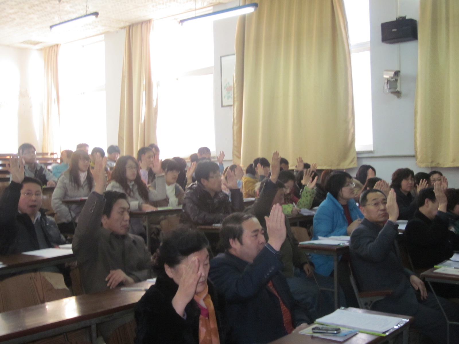 图为大会举手表决现场