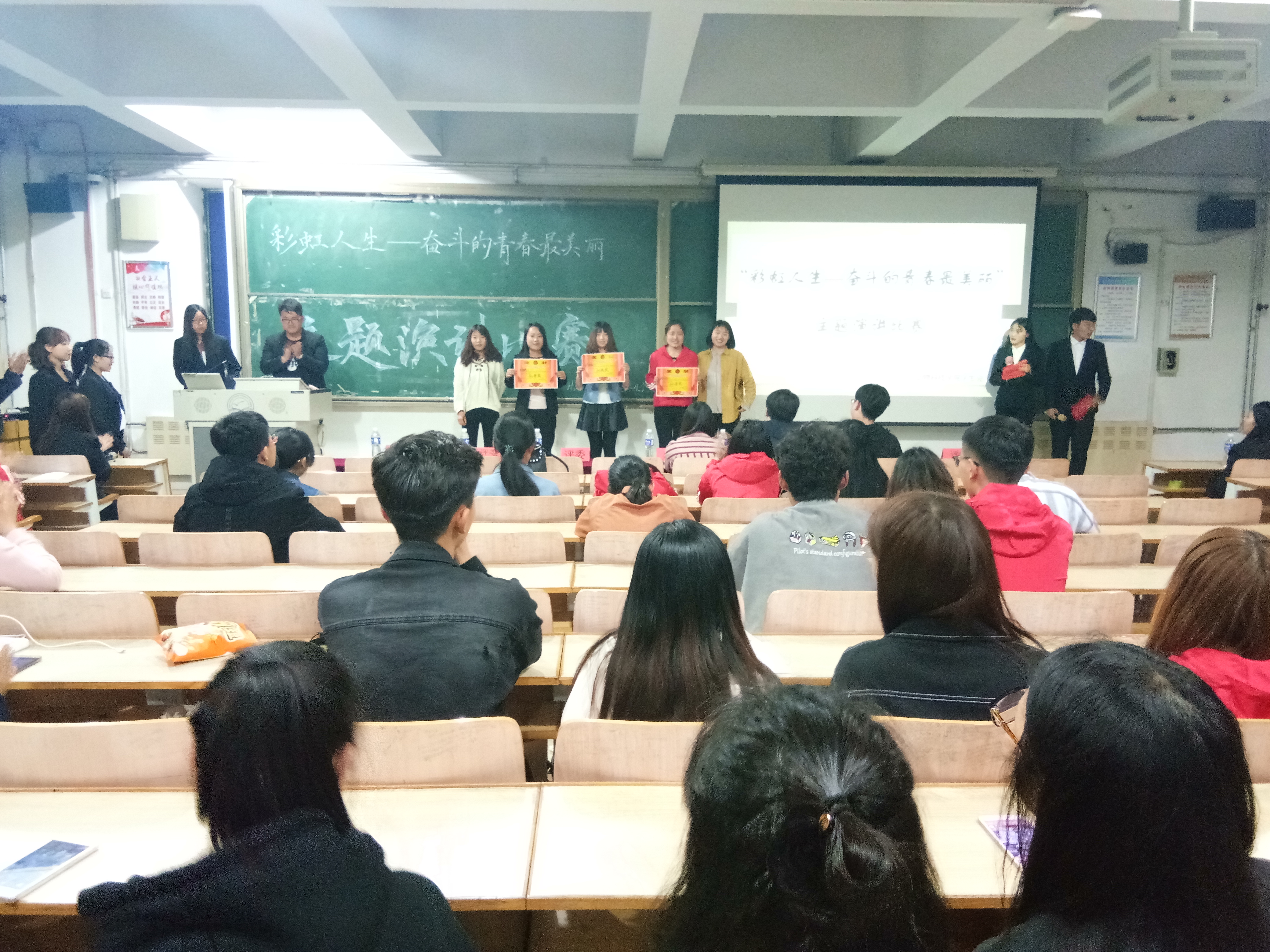 为了丰富大学生的课余生活,锻炼学生的演讲能力和口头表达能力,增强学术气氛,给大家提供一个展现自我,提升自我的机会和舞台,kaiyun官方网站入口于2018年4月19号晚7:00在主楼B105教室举办了以“彩虹人生——奋斗的青春最美丽”为主题的演讲比赛。出席本次活动的有kaiyun官方网站入口副院长杨宗泽教授,校广播电台优秀播音员韩黎,kaiyun官方网站入口学生会主席韩诚,kaiyun官方网站入口学生会副主席刘新宇,优秀播音主持人邢艺璇,优秀演讲者周云宵以及动科院全体学生。